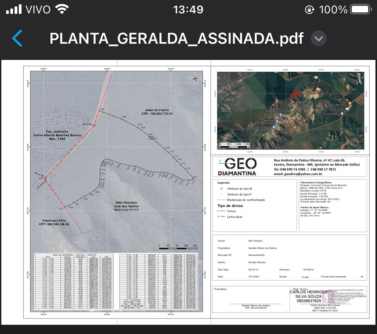 São 49ha escriturados + 13 com regularização de posse. Inventário já concluído e registrado em cartório.
